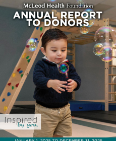 The McLeod Foundation Annual Report offers stories of hope and generosity as a direct result of donor support. Readers are invited to learn how one gift can make a tremendous difference in the life of a patient when they need it most. For more information, please visit the McLeod Foundation.