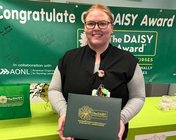 Chelsey’s nomination for the DAISY award included, “Chelsey has gone above and beyond her nursing duties. She has taken time to talk to us and try to reassure us. We have had to make some hard decisions concerning our loved one and she just encouraged us so much. We could feel how much she was concerned about us and about our Mom. Chelsey is so kind and compassionate, and she treated us as if we were part of her family. She is a jewel and deserves recognition.”