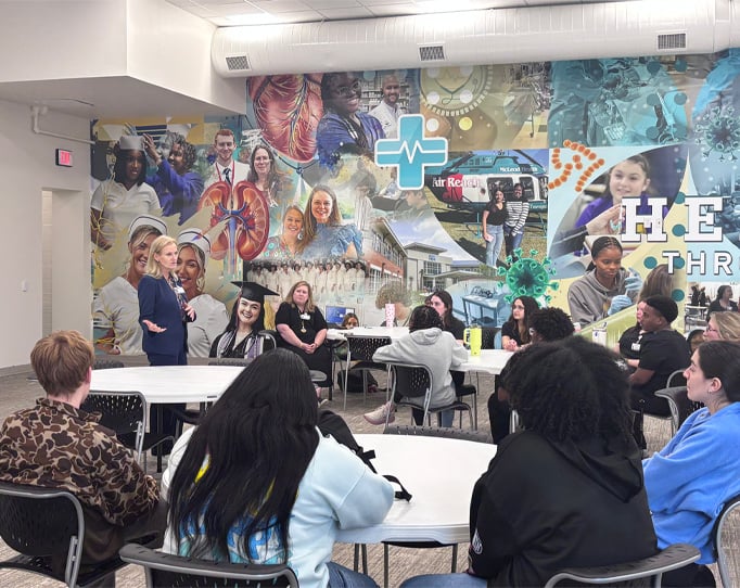Classes began the week of January 5 for the first group of students at the Poynor School of Healthcare Innovation in Florence. On Friday, January 9, Donna Isgett, President and CEO of McLeod Health, provided a welcome as the first guest speaker. She spoke to two separate co-horts of Florence 1 Schools students. Donna provided a personal account of what led her to the healthcare field and engaged in a Q&A session with the students where they could ask about her educational journey and what it’s like caring for patients as a nurse and now as a CEO of a major hospital system in the state.