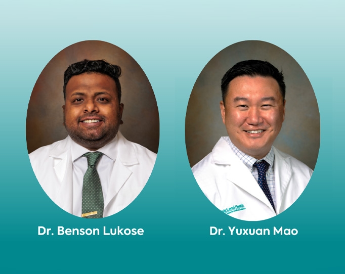 McLeod Health welcomes Ben Lukose, MD, and Yuxuan Mao, MD, to the medical staff.